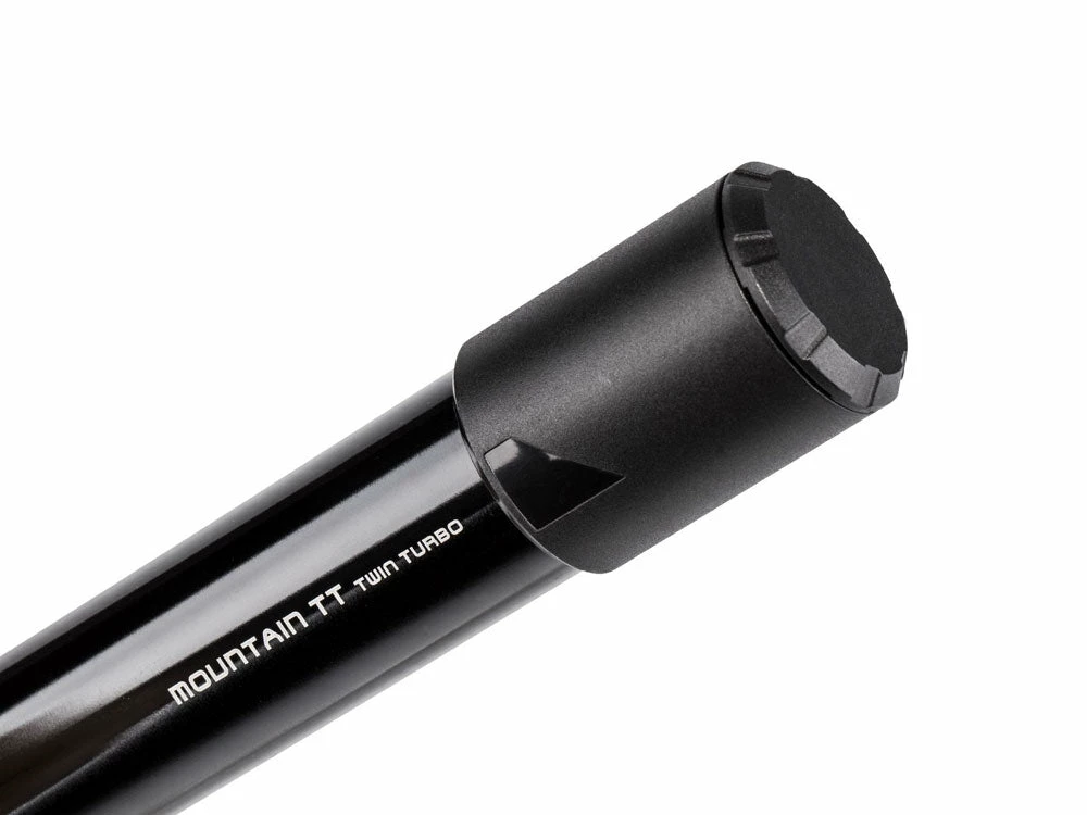 Mountain TT Twin Turbo pump fills both large volume fat bike tyres and higher pressure MTB tyres, as well as gravel, touring, trekking bike tyres with ease. TwinTurbo technology uses both strokes to compress air to deliver high pressure output and saves time and effort. Integrated dust cap keeps pump head clean and thumb lock lever ensures air-tight seal.