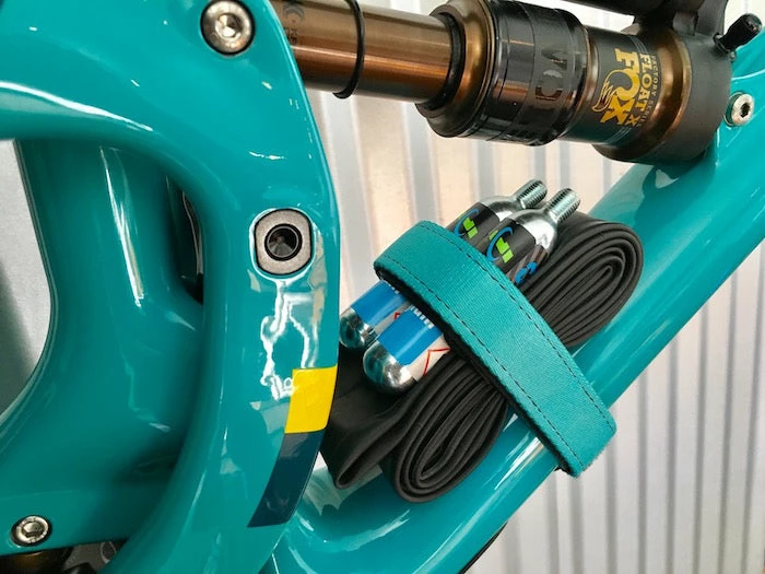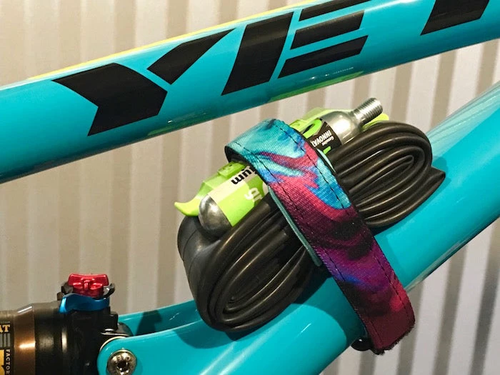 No more juggling, rubber bands or one handed cinching. Our proprietary dual shockcord preload-strap keeps your tubes, levers, inflation more tightly bound to keep your goodies from falling on the ground during installation.