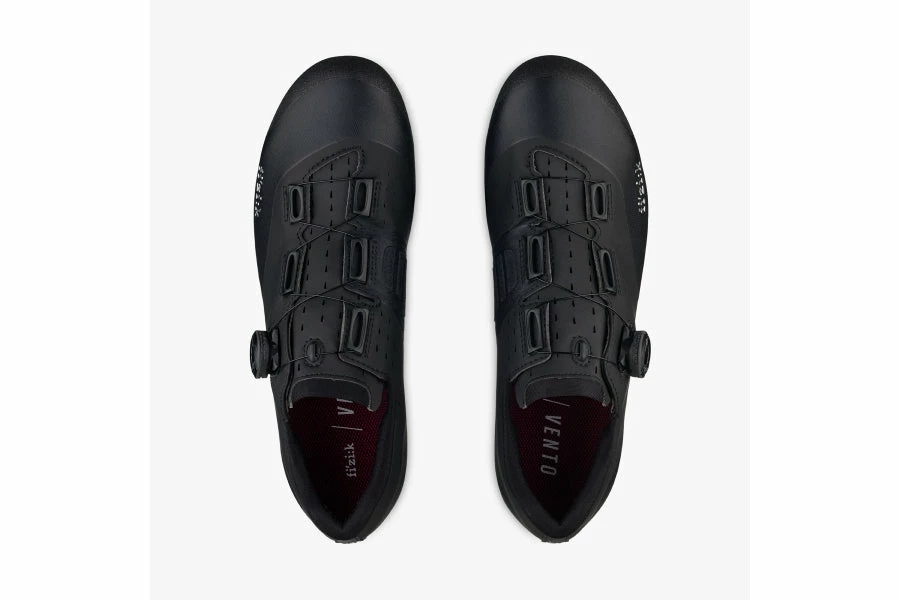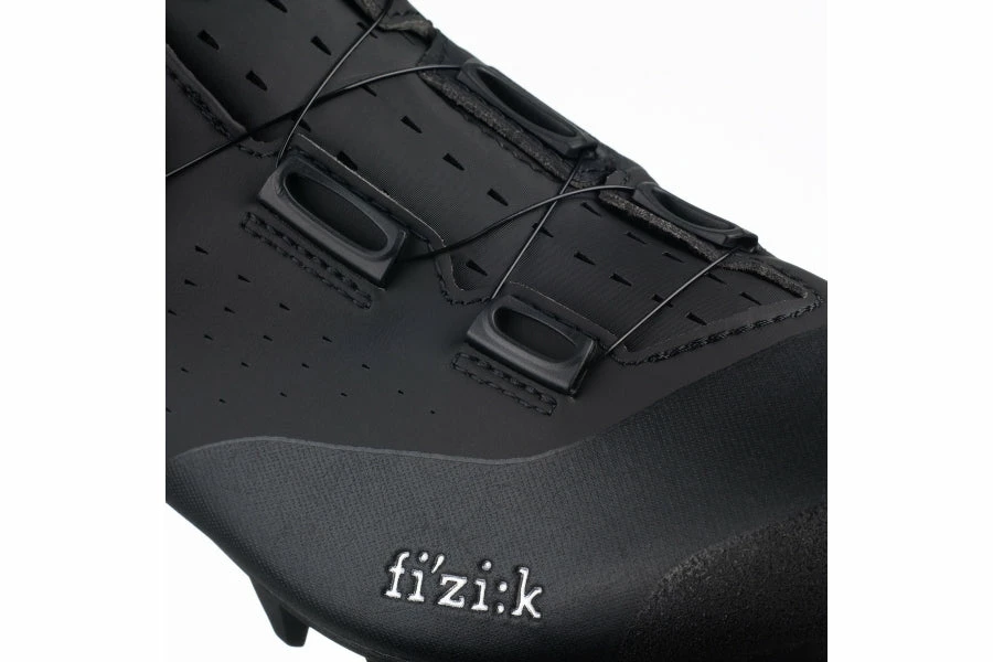 Overcurve – a shoe construction feature from fizik using a staggered collar that wraps around the ankle, tracing the natural misalignment of the ankle’s two bony protusions; the lateral and medial malleoli. The result is an asymmetrical shape, with the throat of the shoe curving over the foot from its outside to inside. The closure system is simple and secure, powered by a micro adjustable BOA IP1 dial.