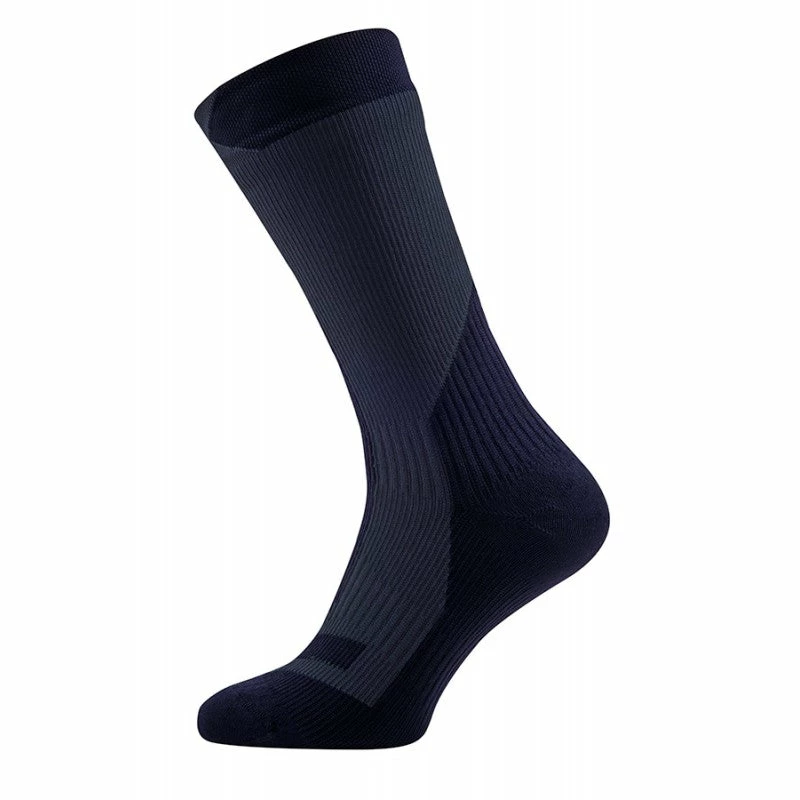 SealSkinz Trekking Thick Mid Waterproof Socks SealSkinz Trekking Thick Mid Waterproof Sock Features: Thick weight, mid length waterproof sock perfect for a multitude of activities and conditions where added insulation is imperative. Constructed with our proprietary Stretchdry waterproof, breathable and windproof technology Thick weight sock providing warmth in the coldest of conditions Thicker Merino wool lining for moisture control and comfort Elasticated ankle and instep offers additional support Y-gore heel construction provides a secure comfortable fit Padded heel, toe and footbed absorb shock and guard against pressure and friction, reduing the risk of blistering Hand linked toe closure, creates a flat seam to prevent rubbing Outer Lining: 90% Nylon, 10% Elastane Membrane: Hydrophilic Membrane Inner Lining: 42% Merino Wool, 42% Acrylic, 14% Polyester, 2% Elastane Sizes: Small: UK 3-5, EU 36-38 Medium: UK 6-8, EU 39-42 Large: UK 9-11, EU 43-46 XL: UK 12-14, EU 47-49 Aqua Dynamic Design: Sealskinz ADD performance: A.D.D. optimises performance all year round. A.D.D. addresses the dynamics of weather and cold, by controlling; temperatures, wind and waterproofing, AQUA DYNAMIC DESIGN drives innovation in the pursuit of unsurpassed durability and comfort. Thermal Rating: 4 Not sure of your size? have a look at our SealSkinz Size Guide Thermal Rating Guide Each of SealSkinz products carries a thermal guide from 1 to 5 enabling you to make an informed decision on the best product for your activity. How you feel in the cold is always subjective and dependent on activity, as such you should always go by your personal operating temperature to the final choice of product. These ratings are designed as a guide, and also show where they sit against other products in the sealskinz range
