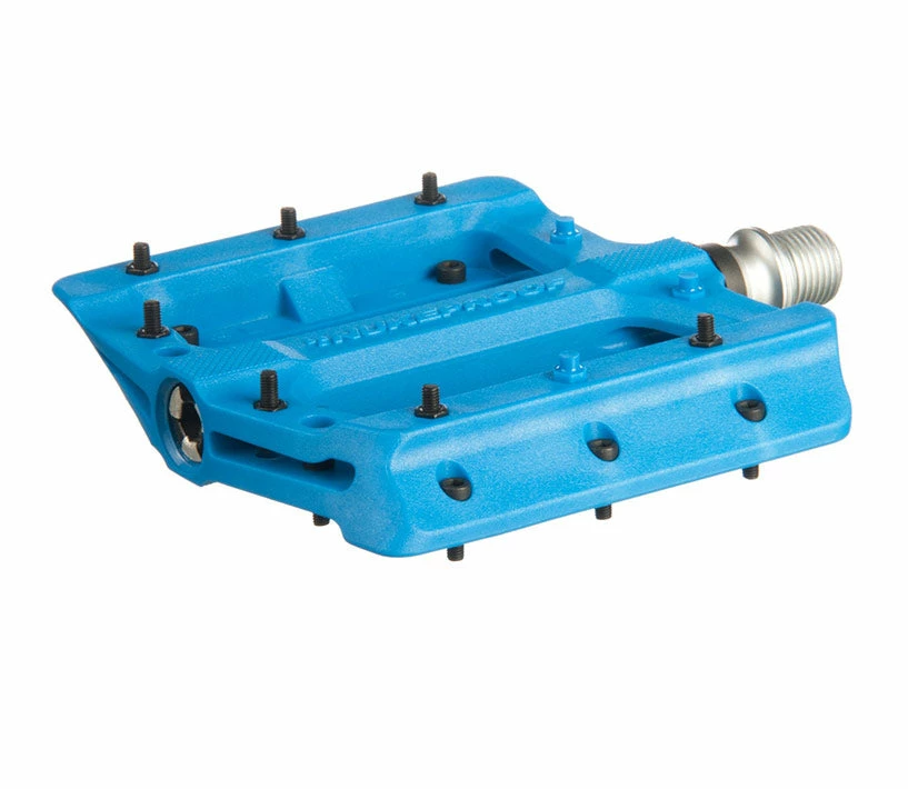Nukeproof Neutron Evo Flat Mountain Bike Pedals Super-tough, smooth-spinning and rock-solid underfoot, the Nukeproof Electron Evo pedals have been designed to offer a lightweight platform that isn’t going to break the bank. Built using a nylon-reinforced composite material, the Electrons use sealed cartridge bearings to help spread the stress load from heavy impacts, while rubber lip seals between the axle end and pedal body reduce the ingress of water and dirt which will keep them going for longer in between services. Nylon-reinforced composite body 7 replaceable & adjustable pins and 3 moulded pins per side Sealed cartridge bearing 2 x high quality DU bushings & 4 x sealed cartridge bearings (Per Pair) Dimensions: approx 98mm x 95mm x 17mm Axle: CroMo Weight: approx 354g pair