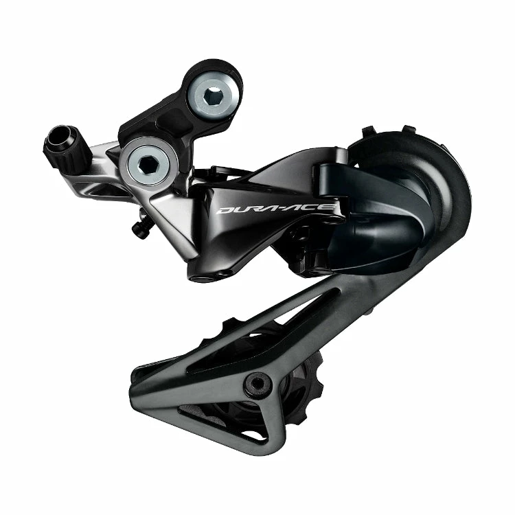 Dura-Ace rear derailleur with lightweight carbon cage and wide link design gives quick accurate shifts, and unmatched drivetrain efficiency