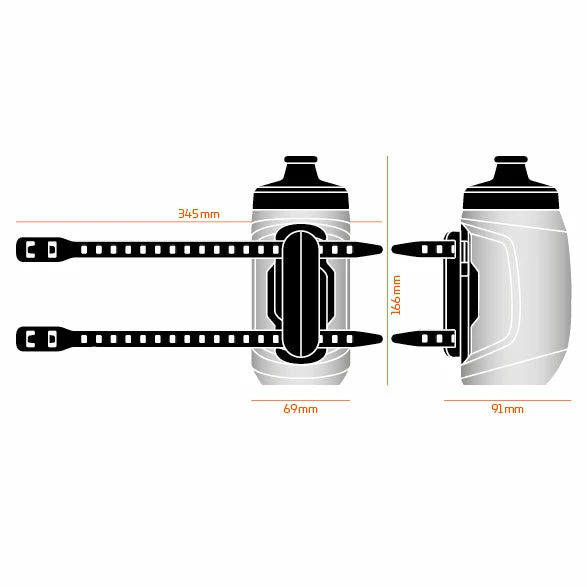 If the bike has no thread inserts at all or if they are already blocked, the TWIST bottle 450 comes with the TWIST uni base. This universal frame adapter can be easily attached to any pipe with a width of 28 62 mm thanks to the wide TPU zip ties. The smooth rubber back of the universal bike bottle holder protects your frame against scratches and helps holding the uni base in place.
