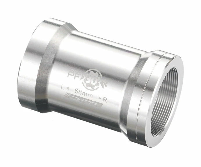 Presses into a PF30 bottom bracket shell with 46mm inner diameter (ID) and 68mm width to allow a threaded bottom bracket to be installed.