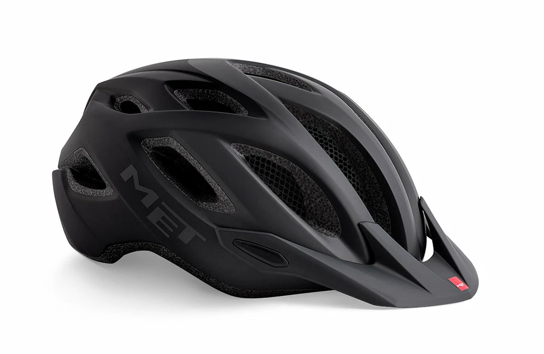 MET Crossover Mountain Bike Helmet The two in one solution. As an everyday rider or a tool for the track, the Crossover has you covered. Two helmets in one, the Crossover brings the latest modern style and trend in biking helmets to the table with an unmatched versatility in wear and a fantastic new look. Using an invisible Clip- on-Anchor system, riders can transform their Crossover from casual street to multi-terrain ready with a rugged visor extension. The Crossover is highly ventilated, compact, equipped with LED safety lighting, and Met’s Safe-T E-Mid fit system. Specifications: Outer shell construction: In-Mould Inner shell: Shock absorbing polystyrene Chin strap buckle: Anti-pinch buckle Strap and Divider: Anti-slip cam divider Fit system: Safe-T E-Mid Visor: Removable visor. Invisible attachment clip for a stylish look with or without visor Comfort: Anti-allergenic interior padding. Hand washable Be seen: Rear reflective sticker. Integrated rear LED light Accessories: In-moulded anti-insect net Certifications CE, AS/NZ, US Weight approx: Uni-Size: 290g, XL: 350g Size: Uni-Size 52-59cm, XL 60-64cm, Medium 52-59cm