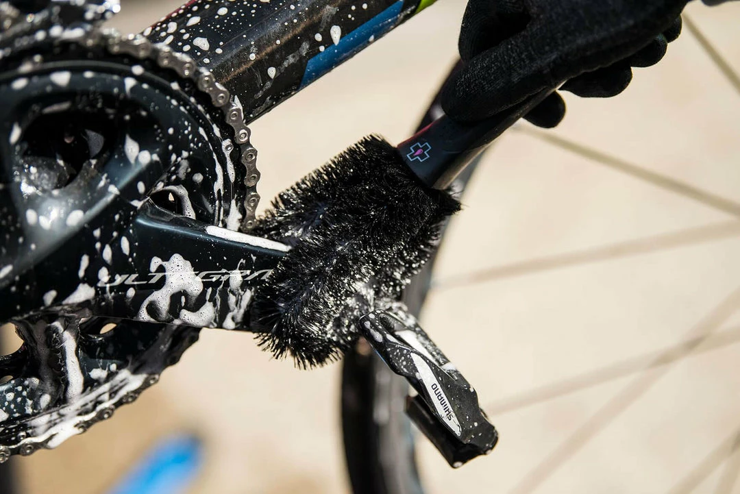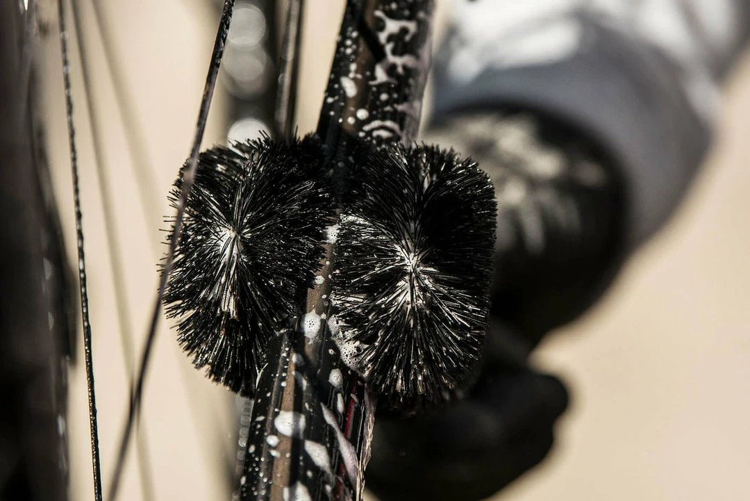 Our Two Prong Brush is ideal for reaching hard-to-shift dirt on spokes, discs, shocks, cranks, linkages and pedals. Its unique design features an impact resistant, dual density handle for maximum grip in wet conditions and durable nylon bristles. The twin brush heads can even be altered and repositioned to reach even the tightest areas!