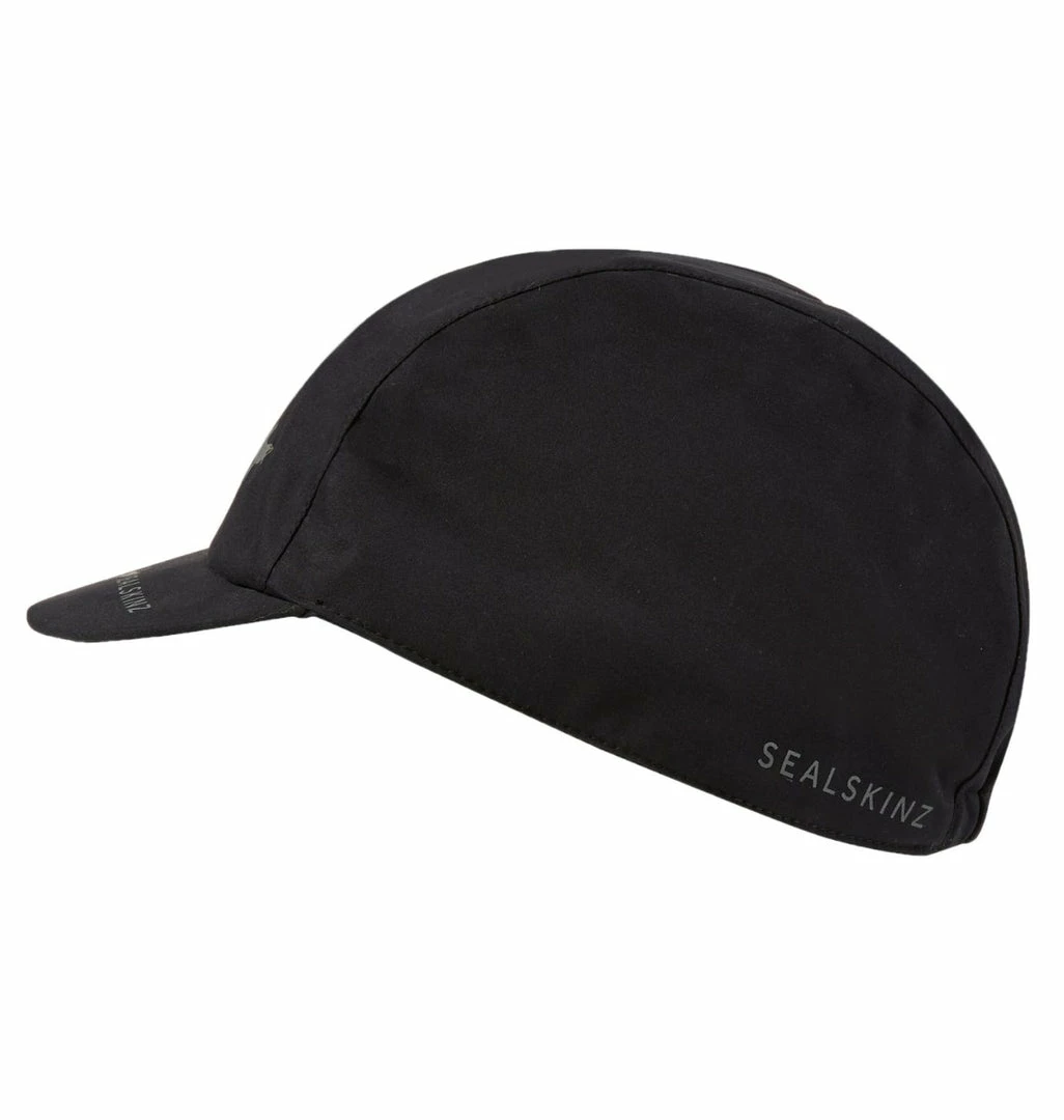 A lightweight three layer classically styled waterproof cycle cap is crafted to be worn under protective headwear in a variety of weather conditions.