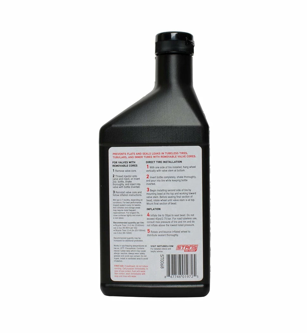 Just two ounces of Stans Tire Sealant in a converted standard tire or a tubeless tire can repair up to a 1/4″ hole instantly.