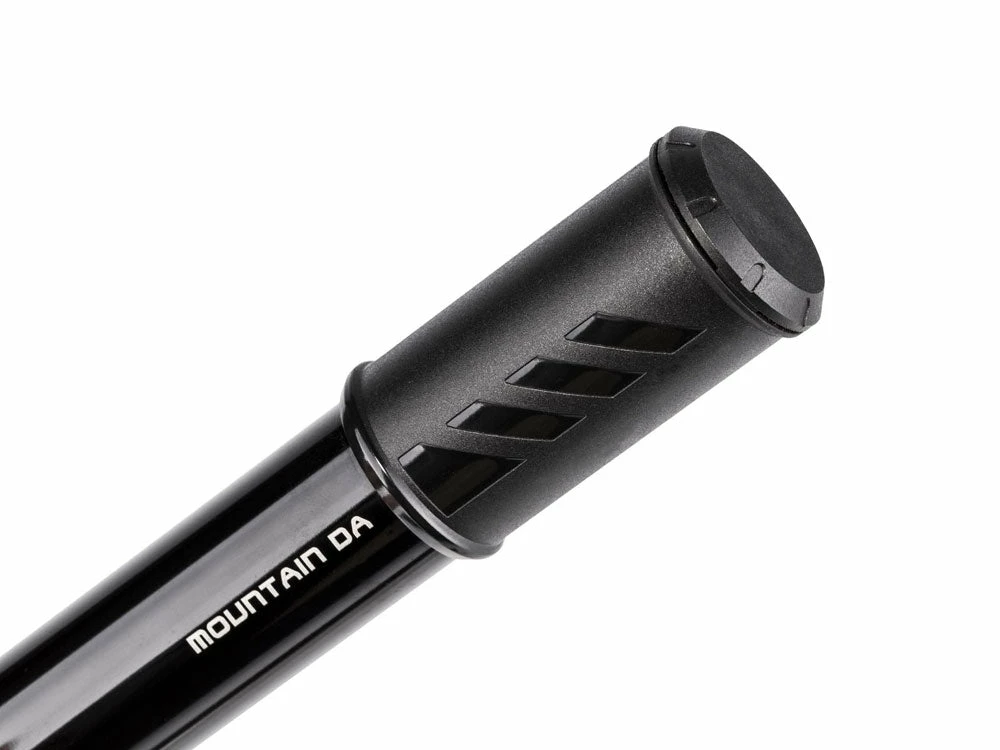 Oversized aluminum barrel fills large volume MTB, fat bike tyres with ease while Dual-Action (DA) doubles volume with each stroke and inflates tyres up to pressure fast. Integrated dust cap keeps pump head clean and thumb lock lever insures air-tight seal.