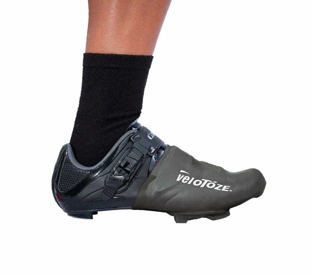 VeloToze Toe covers are designed to keep cyclists feet warm on cool, foggy mornings. They are made of a flexible, lightweight material that is waterproof, windproof and aerodynamic. They are very light, weighing less than 25 grams a pair and are compact, folding up smaller than a spare tube, which allows them to easily fit in a jersey pocket or saddle bag. Triathletes can put them on their cycling shoes before a race, saving valuable time in transition. Whether it’s race day, training day or just another commute day, veloToze Toe Covers will keep your feet comfortable.
